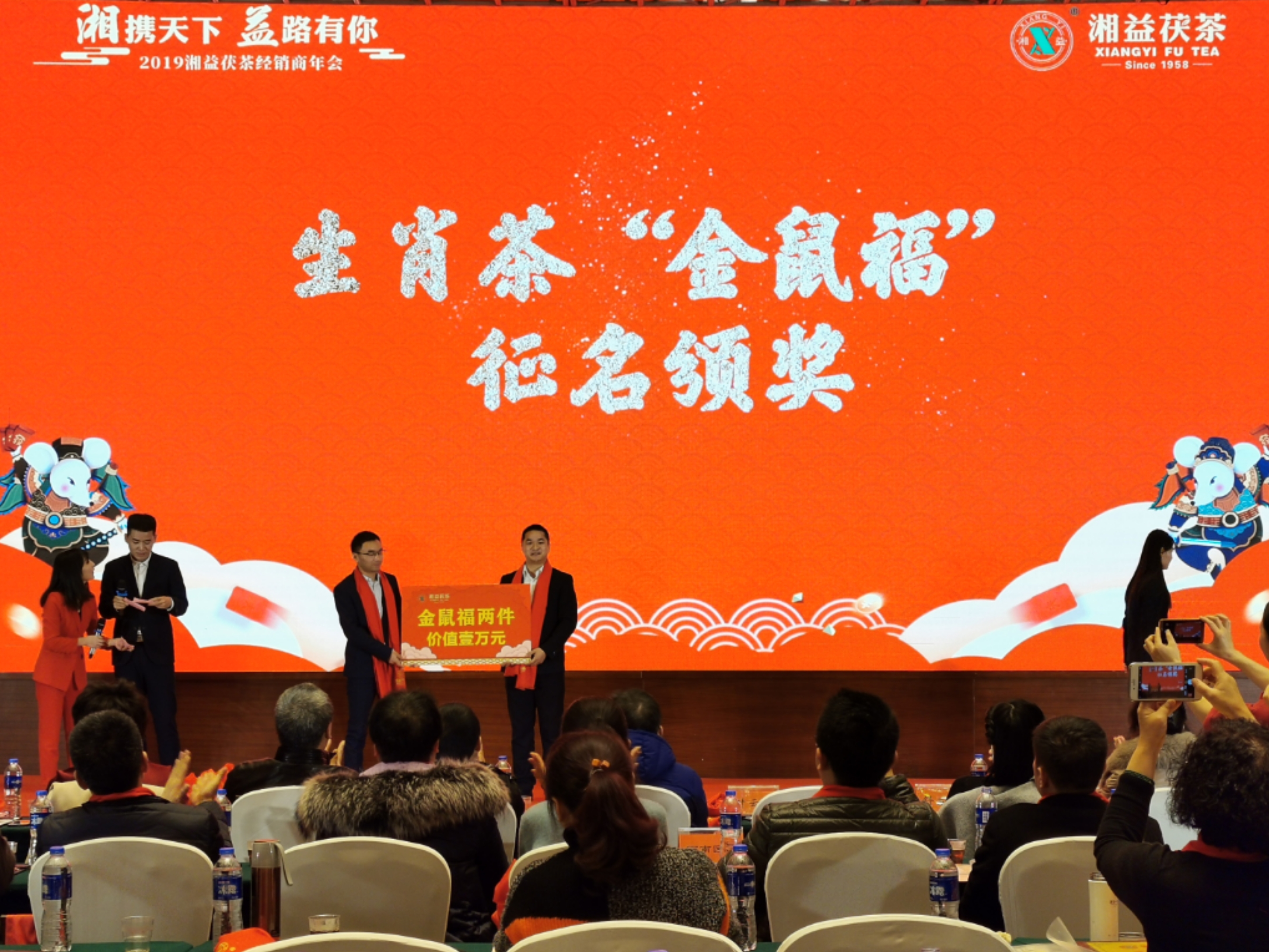 緊接著,是總經理助理余智勇為生肖茶命名者頒獎,公司從2015年開始,每年開發(fā)推出一款生肖茶,2020年生肖茶命名是在全國全網進行征集的,得到了廣大茶友的參與與支持,最終確定為“金鼠?!?。