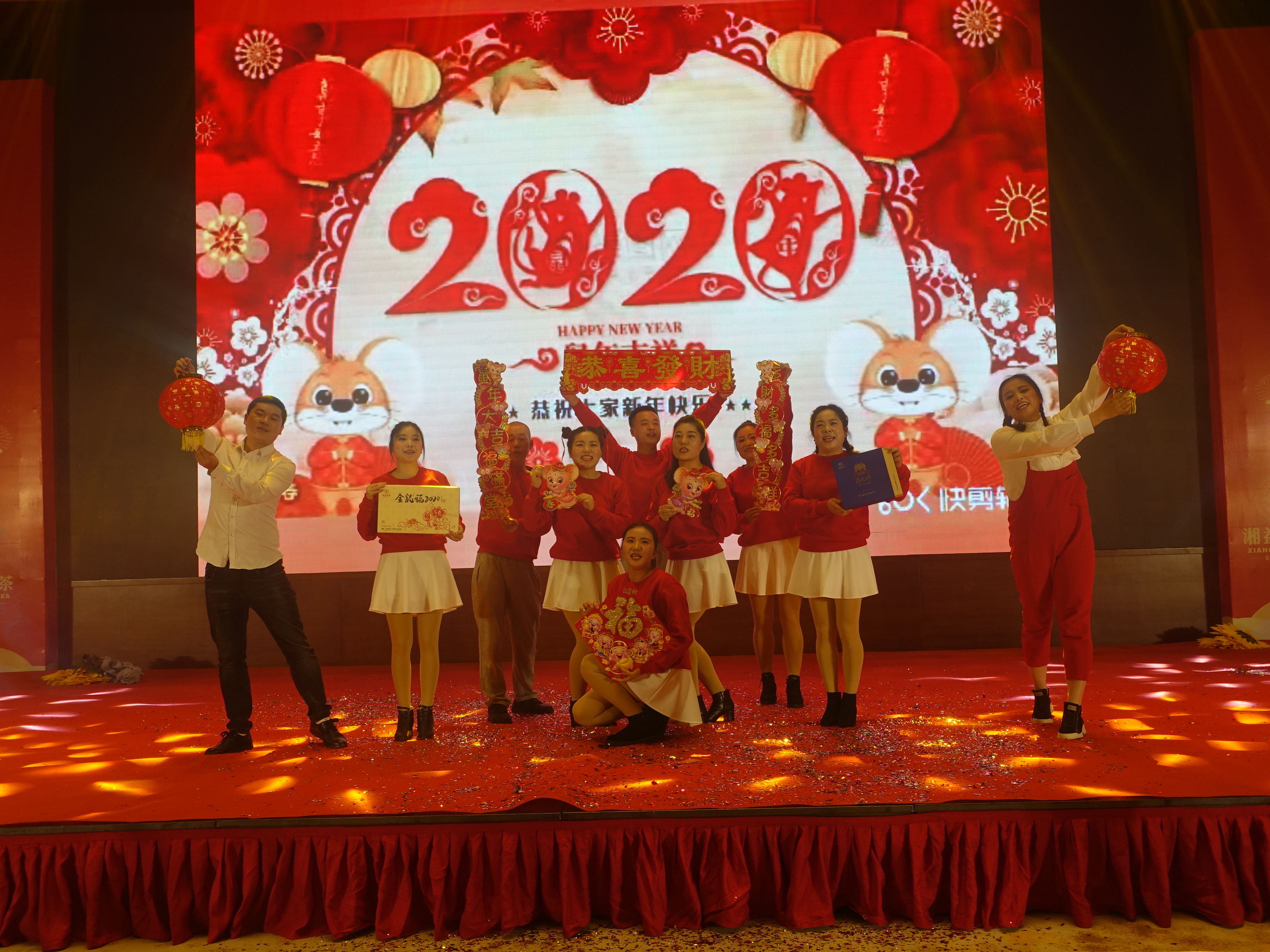 上午9點,各位來賓戴著喜慶的湘益紅圍巾陸續(xù)入場就坐,年會在湘益2019年總結視頻中拉開序幕,由市場企劃部副經理袁緒斌和朱輝全程主持。