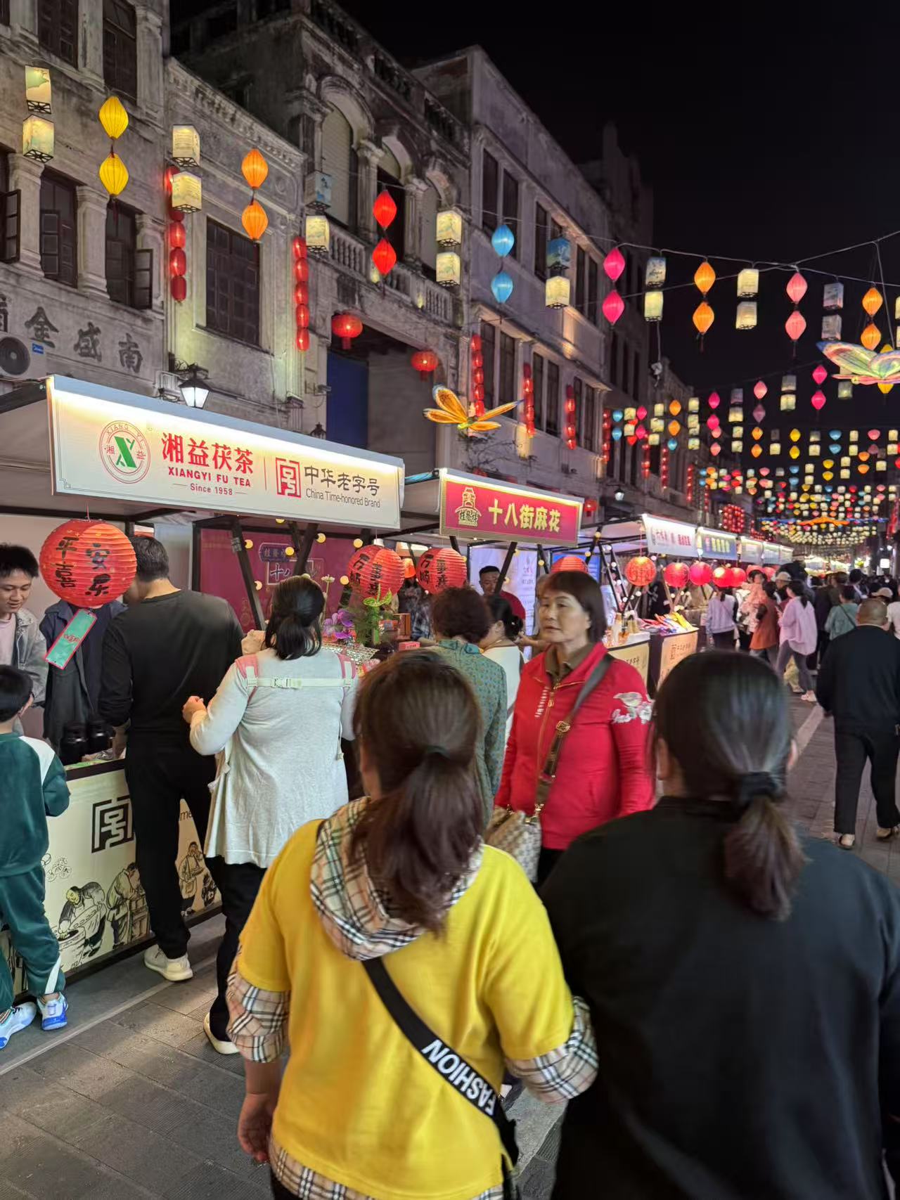 夜晚的騎樓老街更是熱鬧非凡,中華老字號集市聚集了來自全國各地的中華老字號品牌,各種美食數(shù)不勝數(shù),令人流連忘返。