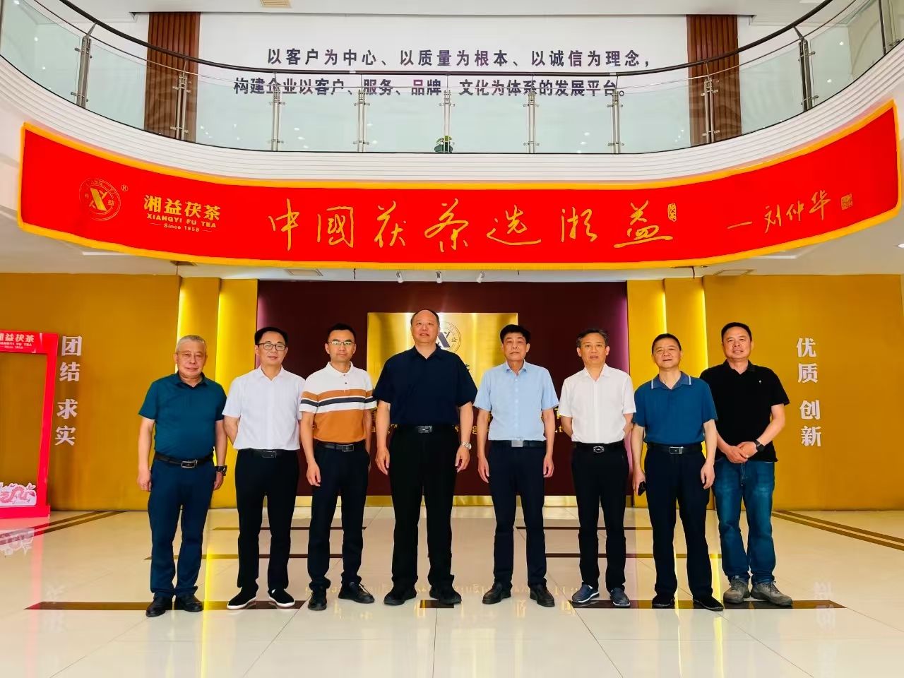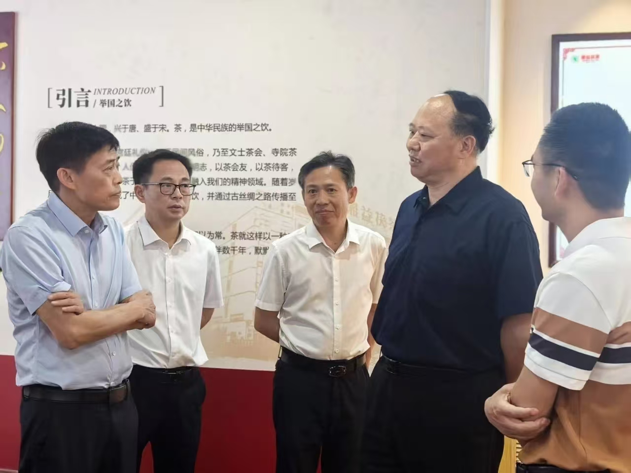 在董事長彭雄根、總經理余智勇、國家級非遺傳承人劉杏益及副總經理姚永軍的陪同下,調研組深入茯磚茶生產車間,觀摩了原料篩選、壓制、發(fā)花等核心工藝環(huán)節(jié)。文富恒主任委員在被譽為“茯茶靈魂”的“金花酵庫”,詳細詢問了冠突散囊菌群的培育技術與品質控制標準,對益陽茶廠在堅持傳統(tǒng)工藝基礎上推進標準化、規(guī)?;a的實踐給予高度評價。隨后,調研組一行走進湘益茶博館,通過歷史文獻、制茶器具及茯茶實物,系統(tǒng)了解茯磚茶發(fā)展脈絡和公司的發(fā)展歷程。