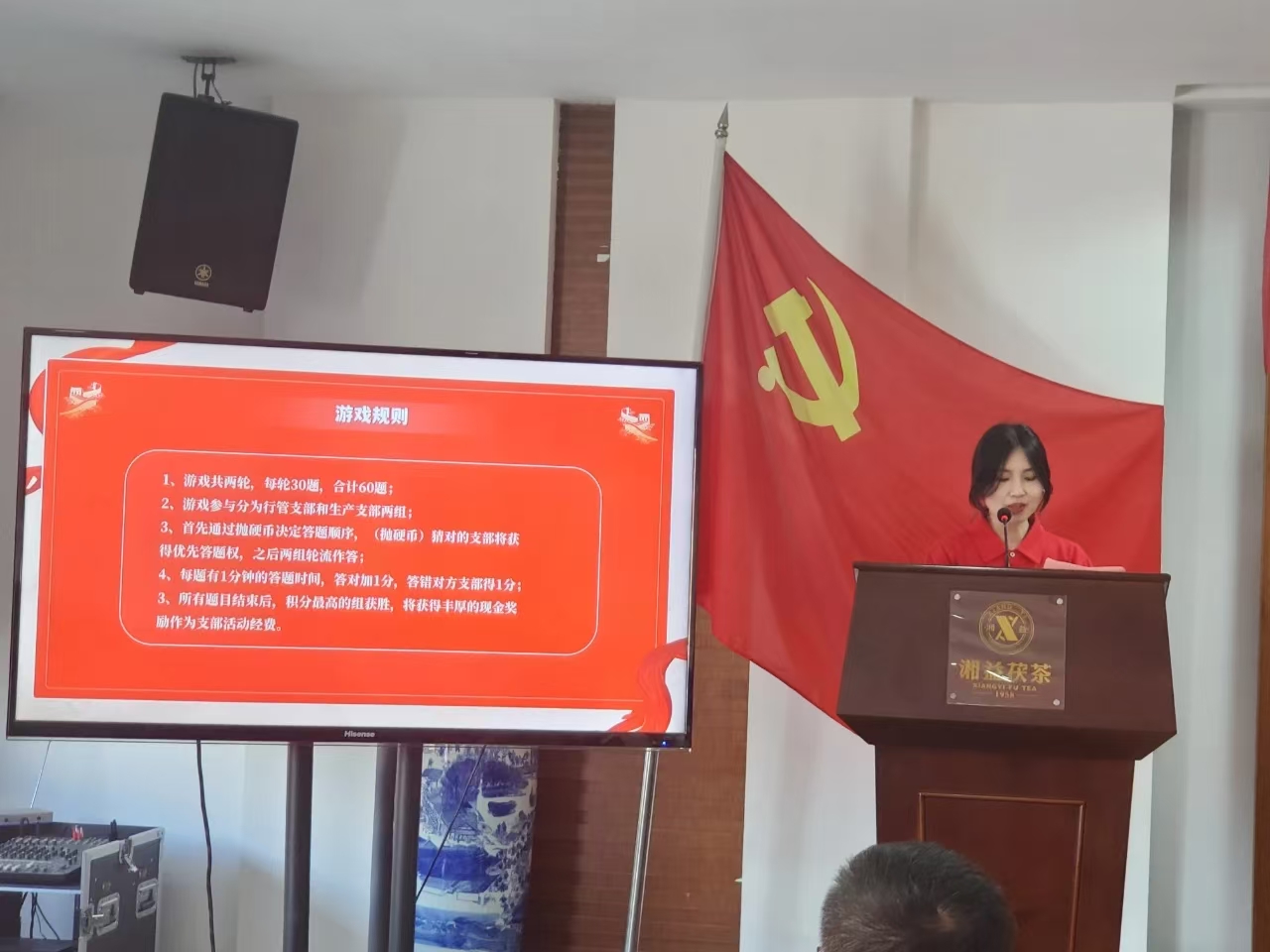紅色知識(shí)與廠史知識(shí)問答環(huán)節(jié)開始,大屏幕上題目涵蓋黨的歷史、重要會(huì)議、革命英雄事跡及廠史知識(shí)。行政支部與生產(chǎn)支部黨員全神貫注答題,答對(duì)題目現(xiàn)場(chǎng)掌聲熱烈。黨員們鞏固黨性知識(shí),加深對(duì)黨史廠史理解,認(rèn)識(shí)到紅色政權(quán)、新中國、中國特色社會(huì)主義及單位發(fā)展成果來之不易。