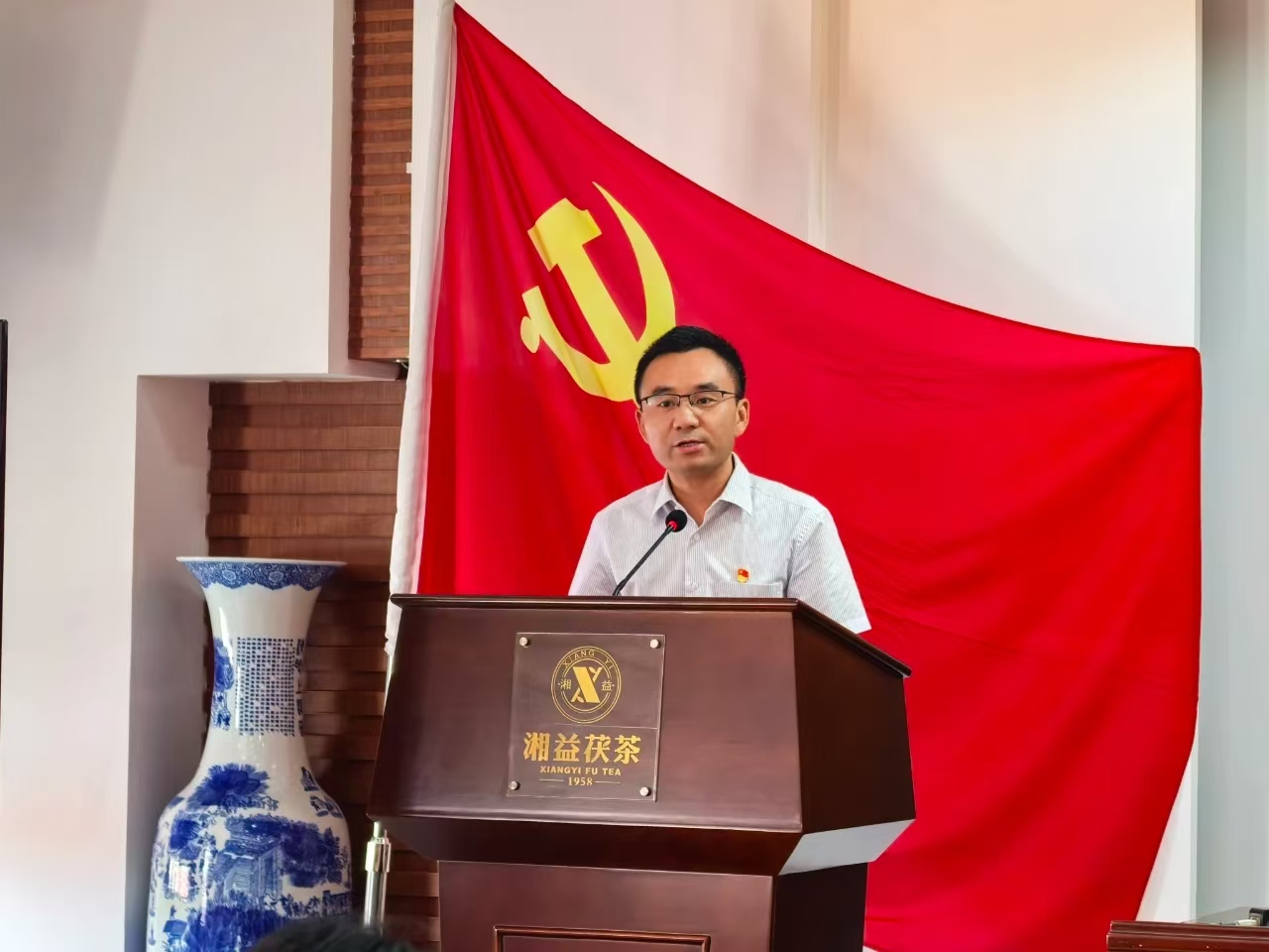 活動(dòng)尾聲,公司總經(jīng)理余智勇的講話擲地有聲:"同志們,新時(shí)代的號(hào)角已經(jīng)吹響。讓我們以逢山開路、遇水搭橋的闖勁,以越是艱險(xiǎn)越向前的拼勁,共同書寫湘益茯茶新的輝煌篇章!"這番話語猶如戰(zhàn)鼓催征,激勵(lì)著每一位黨員以更加昂揚(yáng)的姿態(tài)投身企業(yè)發(fā)展。