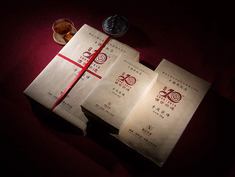 此款組合紀念茶限量收藏禮盒套裝為隆重紀念茯磚茶制作技藝列入國家非物質(zhì)文化遺產(chǎn)保護名錄十周年包含“歲月3kg”、“心傳2kg”、“領悟1kg”三塊精制手筑茯磚,每套均有劉杏益大師親筆簽名,并配備有獨立收藏編號的典藏證書,共10000套,收藏品飲價值皆宜。